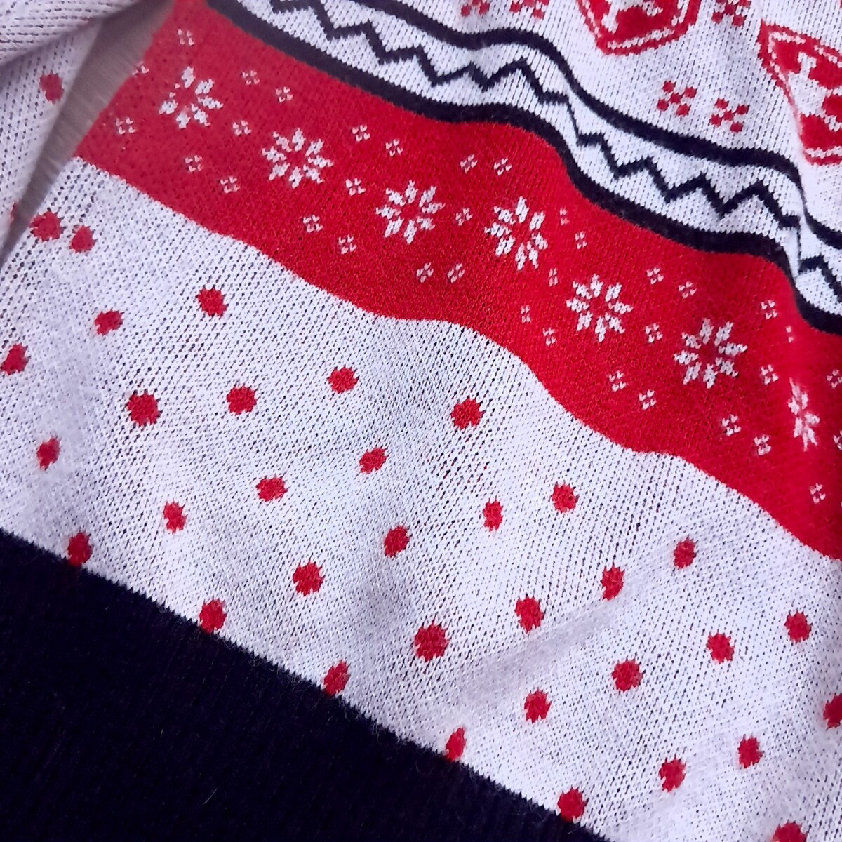 Red, white and black fair isle style design. Acrylic fabric. Has Darth Vader and says Your Lack of Cheer is disturbing.