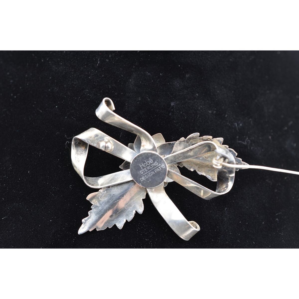 Vintage Signed Hobe Sterling Silver Small Floral Bow 1940's Brooch