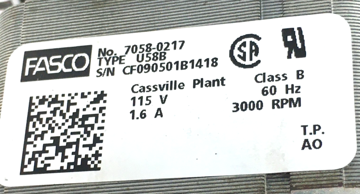 This is Lennox Fasco 7058-0217 Furnace Draft Inducer Motor 7158-0217E 115V 3000 RPM used part.