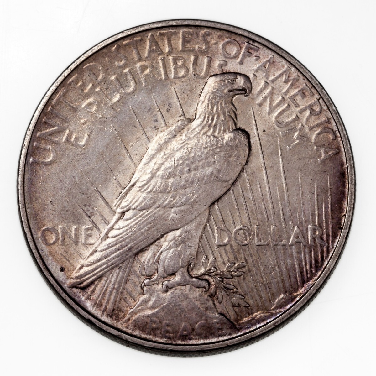 1927-D $1 Silver Peace Dollar in AU Condition, Nice Luster, Gray Toning