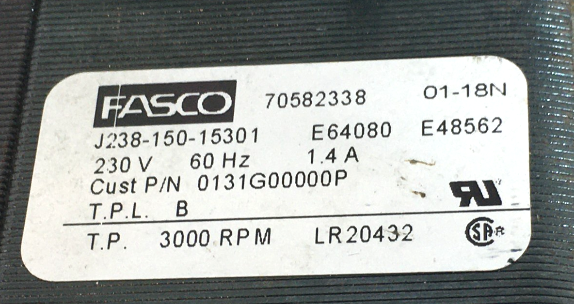 This is FASCO 70582338 J238-150-15301 Draft Inducer Blower Motor 0131G00000P 230V 3000 RPM used part.