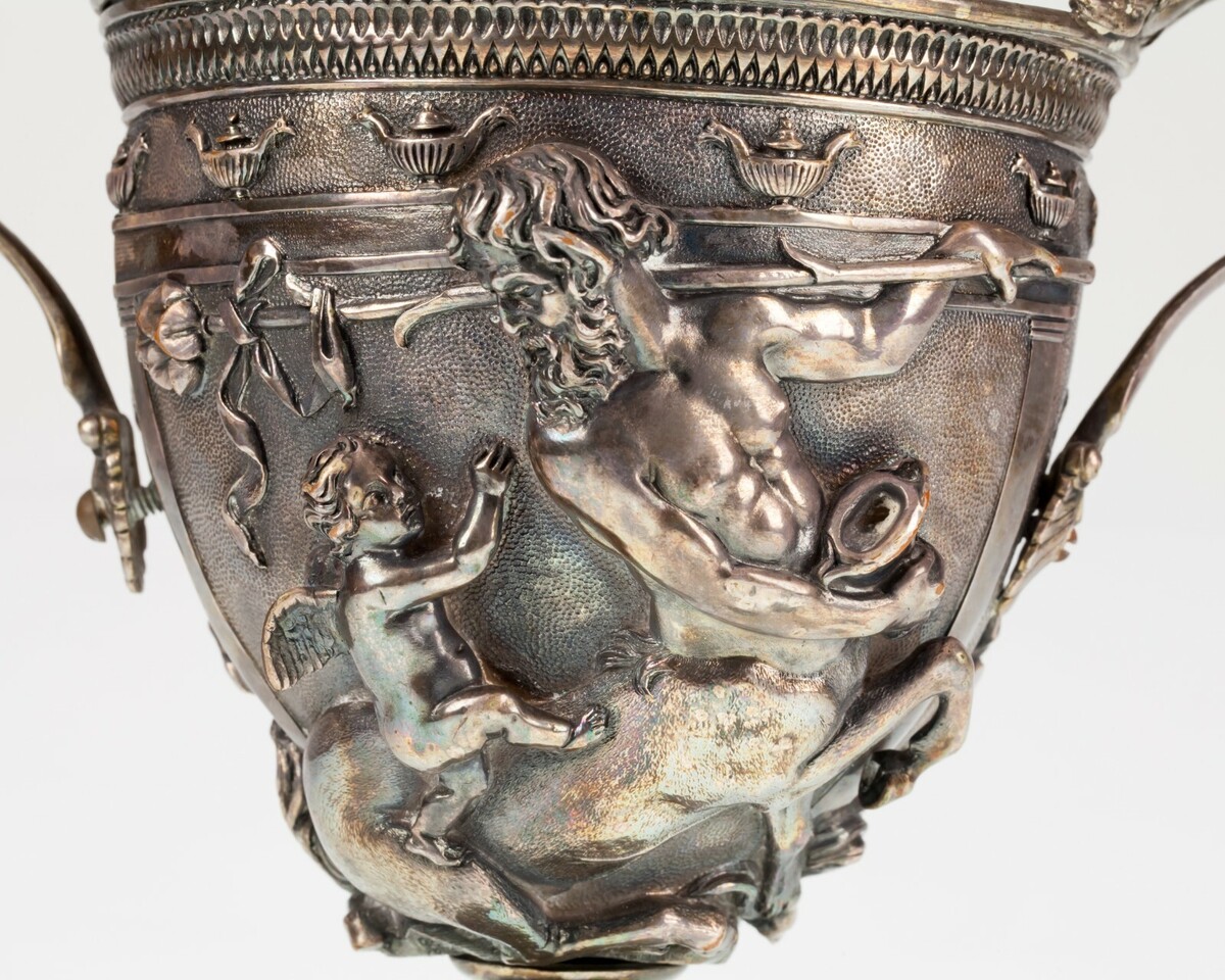 Elkington & Co. Silverplate Urn Trophy Cup with Neoclassical Figures Repousse