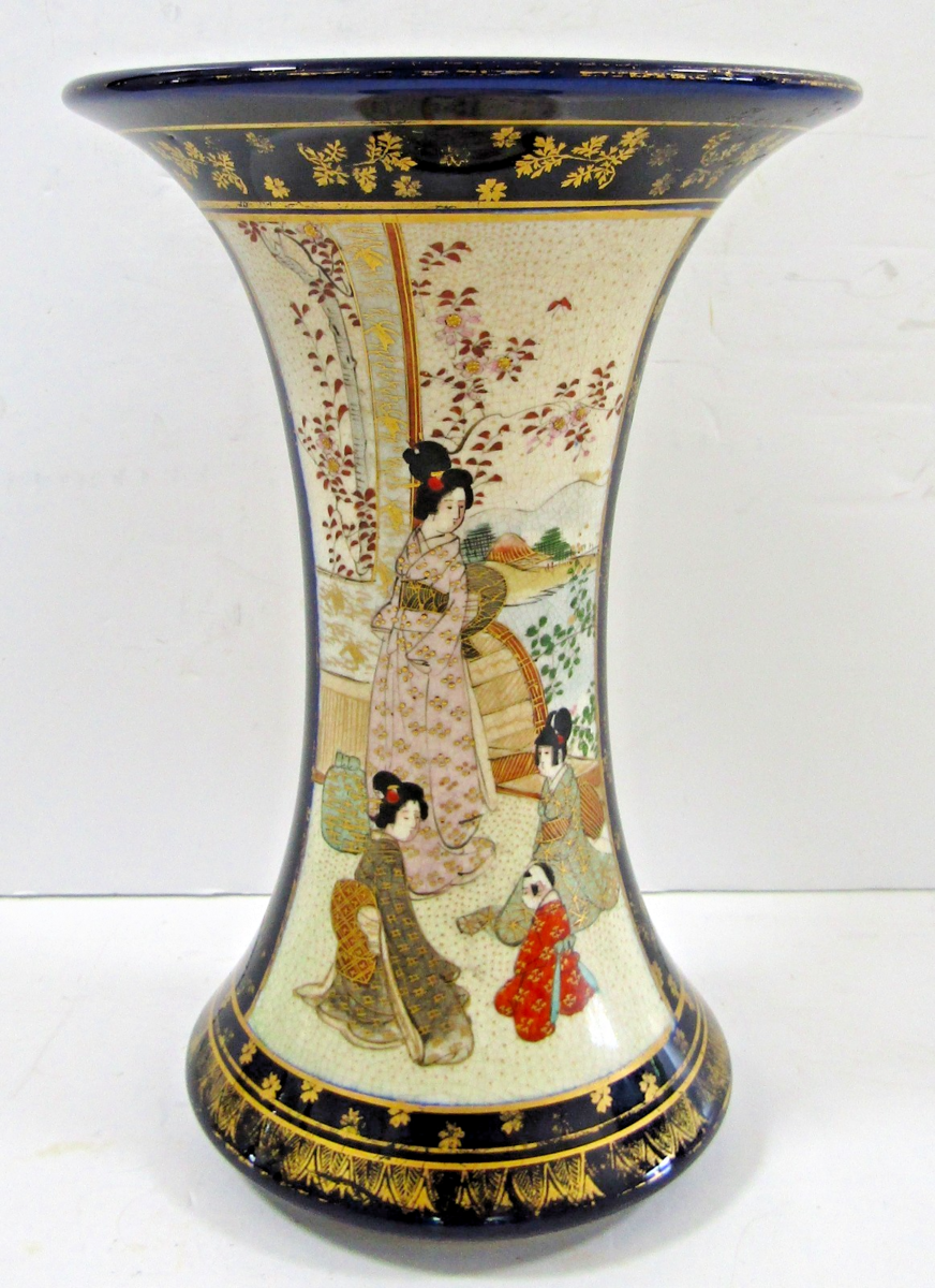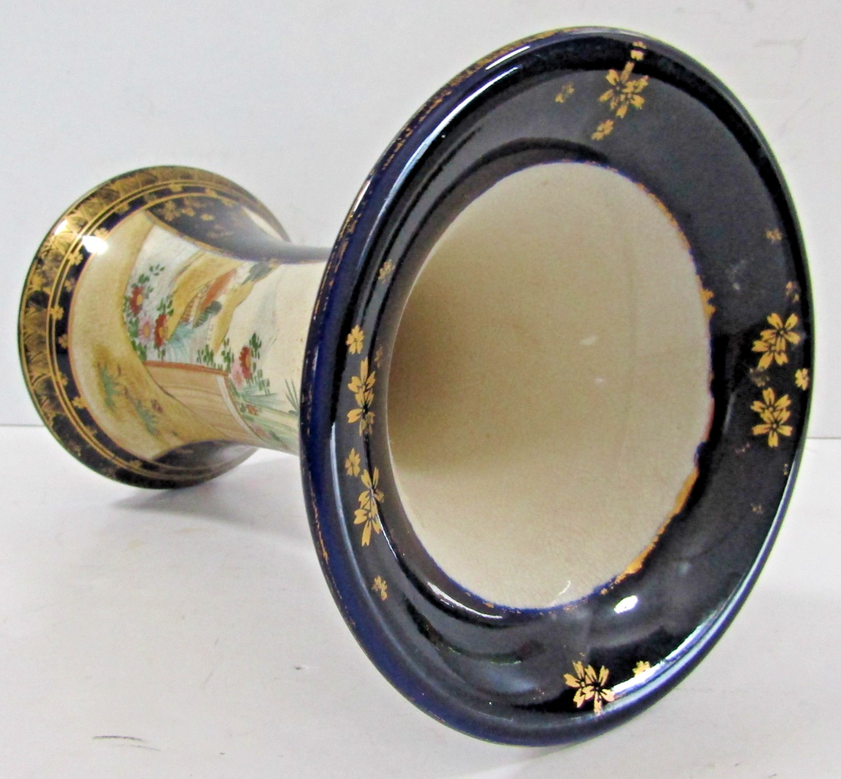 Antique Japanese Satsuma Vase C.1895, Nanzan Mark, Cobalt And Gilt Moriage