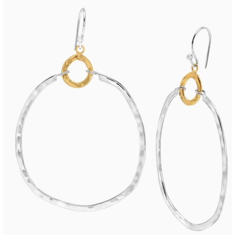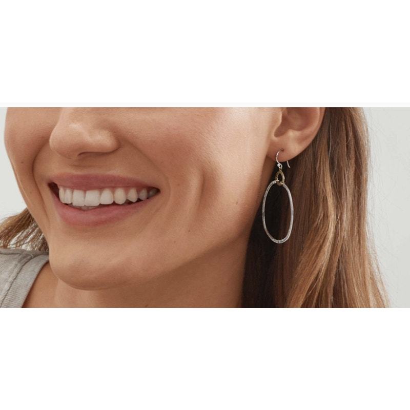 Earrings measure 2 1/2 by 1 3/4 inches. These Dynamic Duo Earrings feature double sterling silver and brass hoops, stacked one on top of another for a delightful two-tone look. A two-toned, lightweight pair, these are perfect for those who like a little texture in their jewelry. These earrings will go with any outfit, from casual wear to formal occasions. The pieces come with .925 sterling silver stamps as symbols of guaranteed product quality.