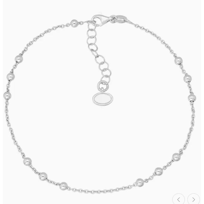 Add a little shimmer, all the way down to your ankle. This anklet features a classic silver chain style with beaded stations. Measures 9" plus 1" extender. Its great for everyday looks, from your favorite white sneakers to tall wedge heels. The piece comes with a .925 sterling silver quality stamp as a symbol of guaranteed product quality.