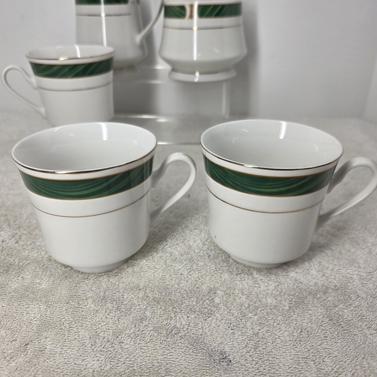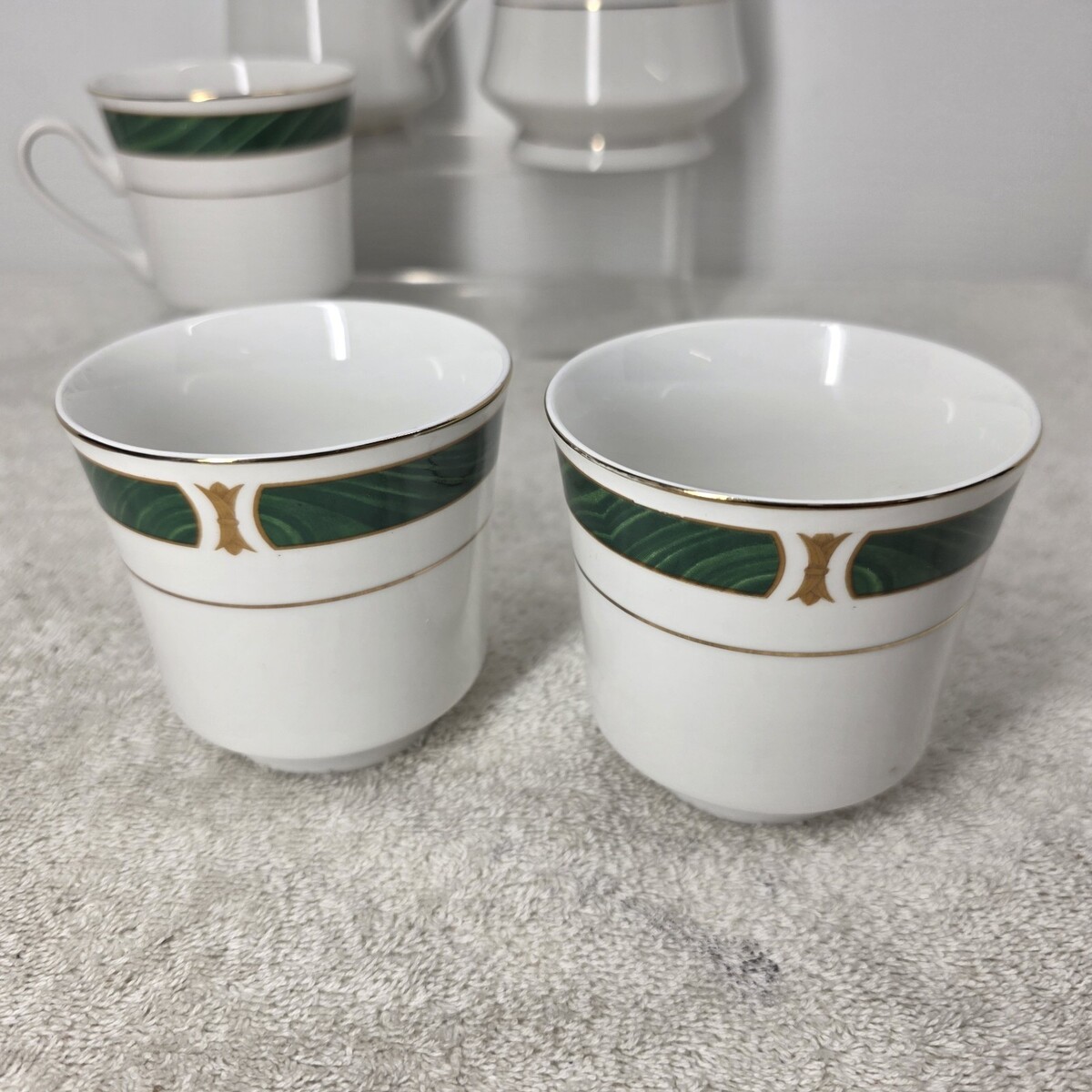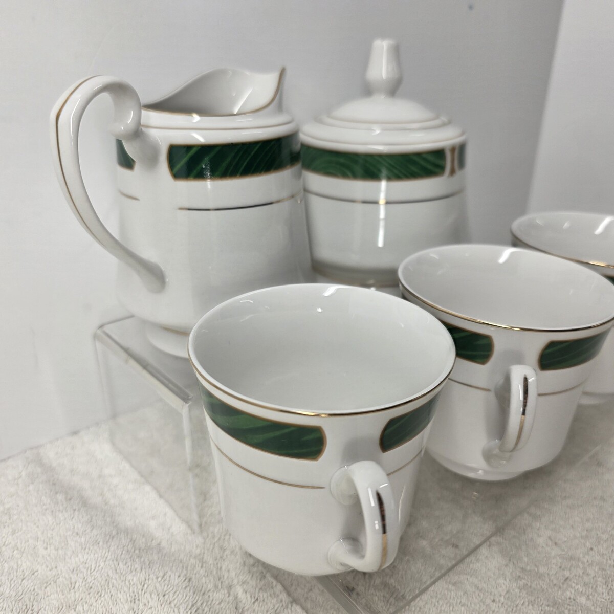 MAJESTY MALACHITE 8420 Green Creamer Sugar Bowl With Lid And 3 Tea Cups