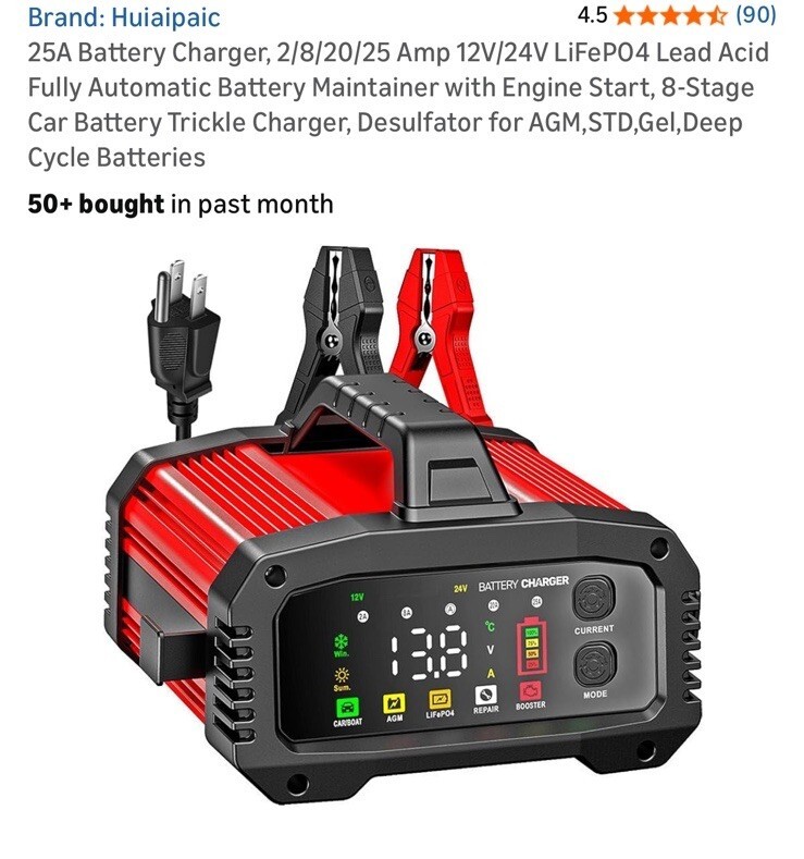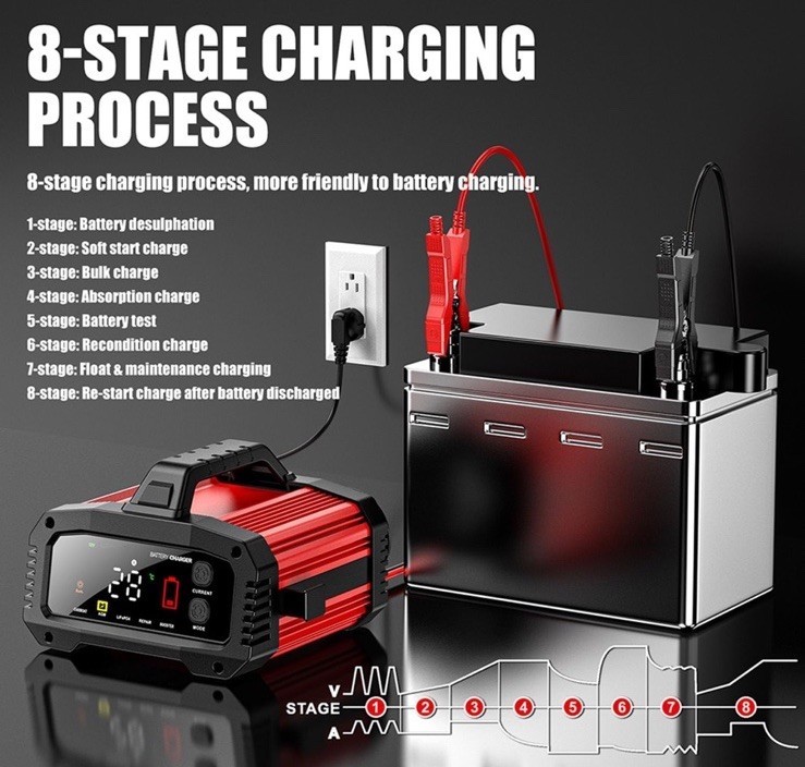 25A Battery Charger, 2/8/20/25 Amp 12V/24V LiFePO4 Lead Acid Fully Automatic ...