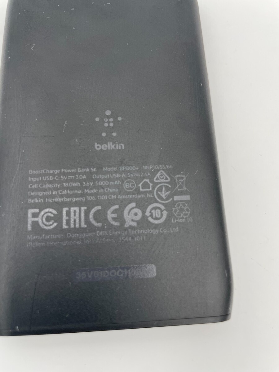 Belkin BPB004 5000mAh 12W 2-port Power Bank with 6" USB-C to USB-A cable Black - GENUINE