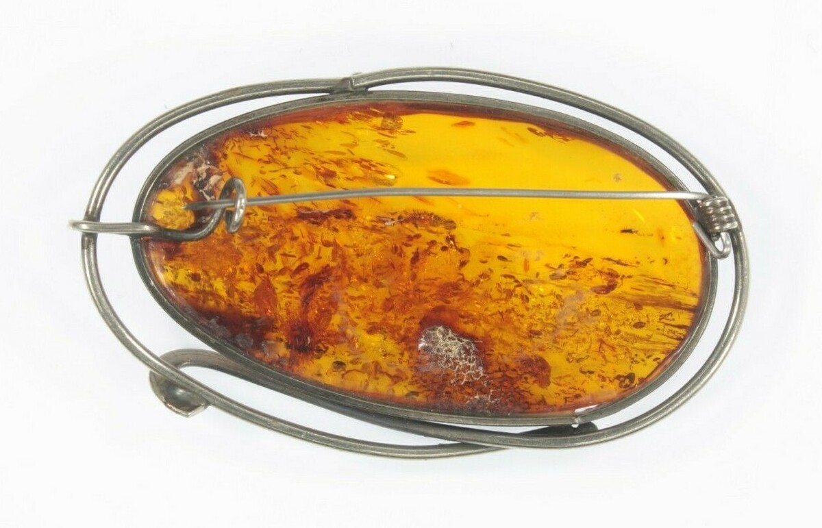 Vintage Sterling Silver Amber Brooch Pin 18.1g