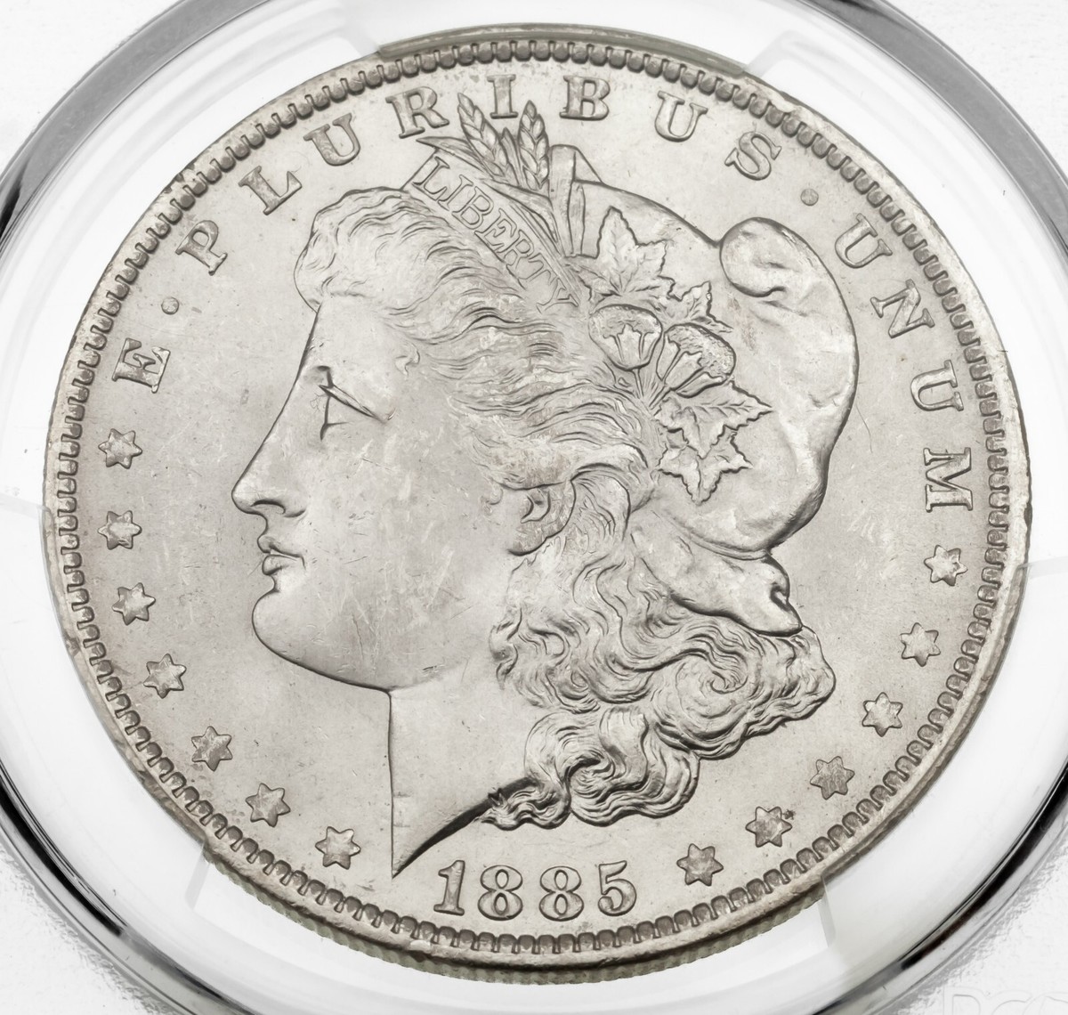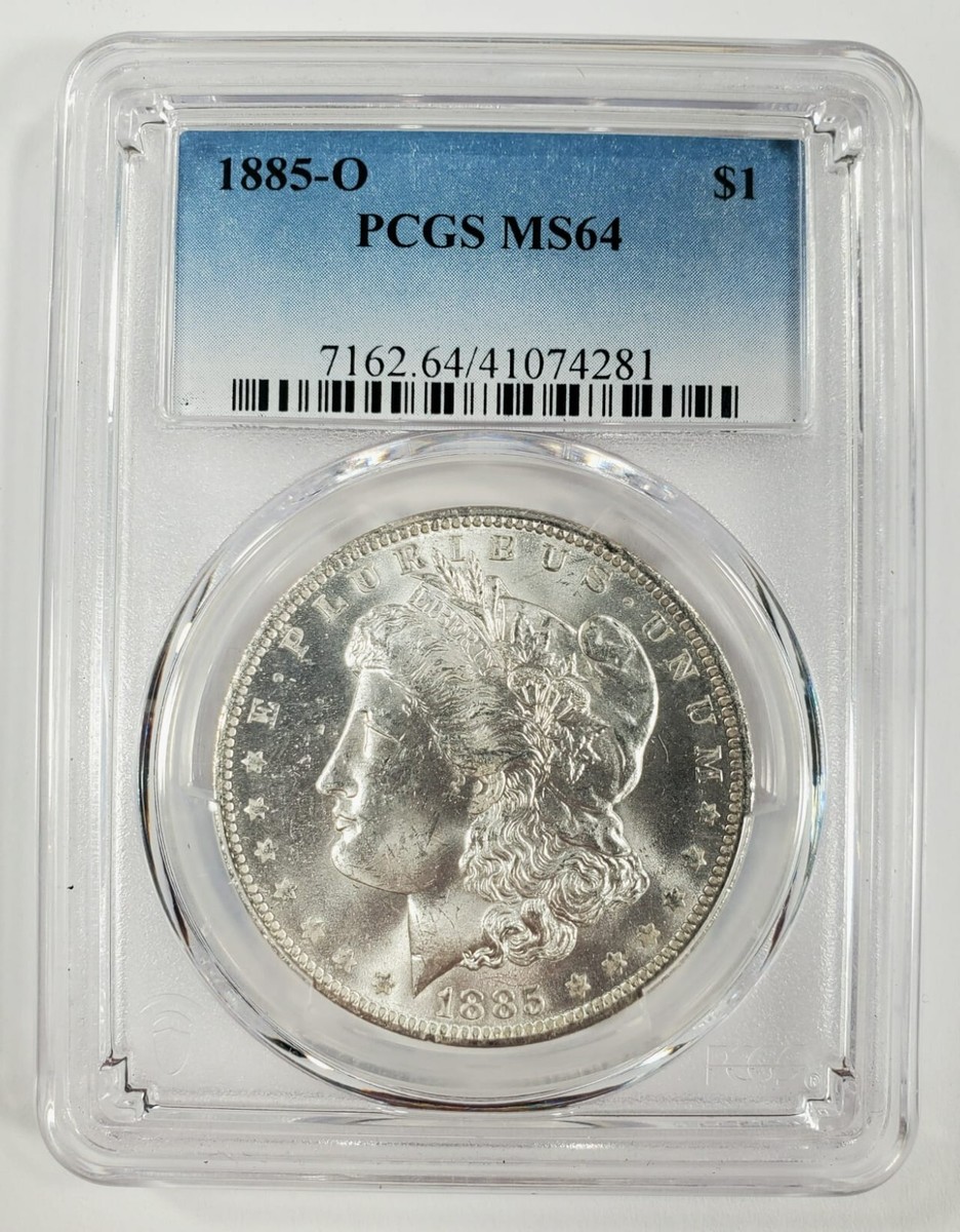 1885-O Silver Morgan Dollar Graded by PCGS as MS-64