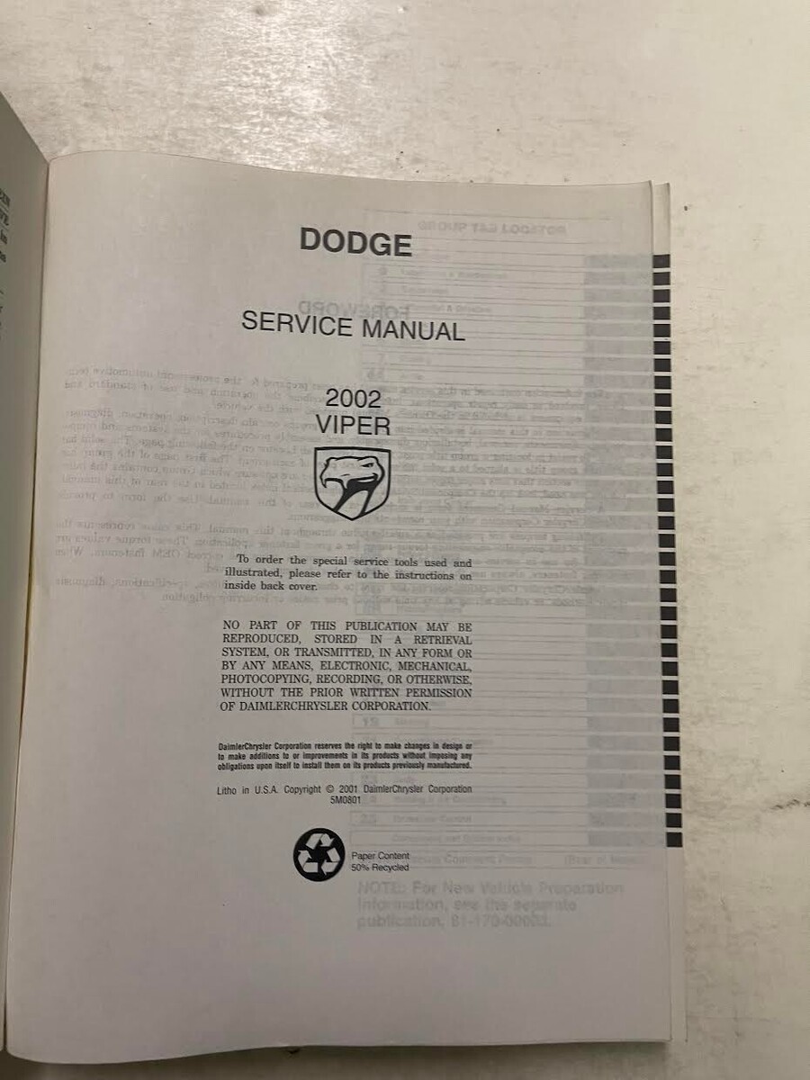2002 Dodge Viper Coupe and Roadster Service Manual, and the Student Guide