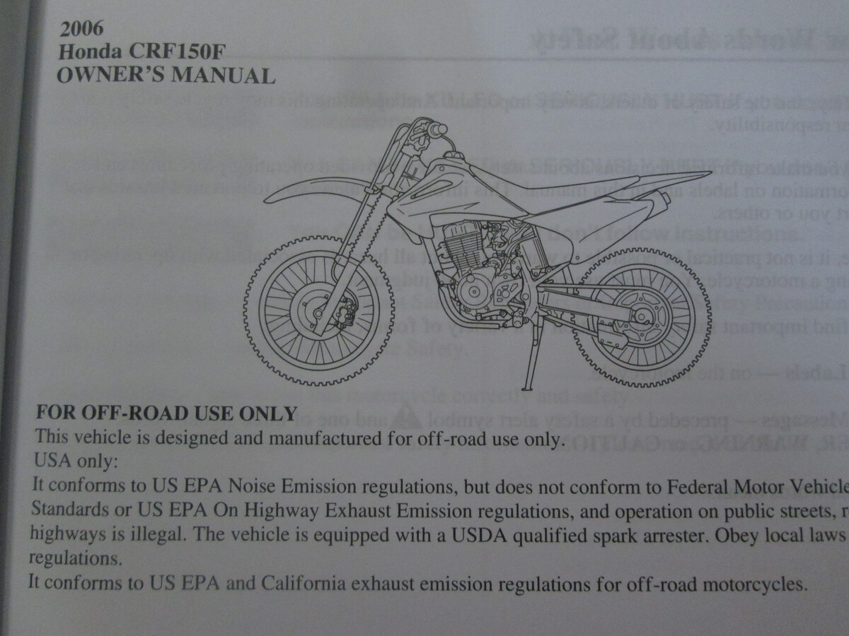 2006 HONDA CRF150F CRF 150 F MOTORCYCLE Owners Manual OEM FACTORY 2006