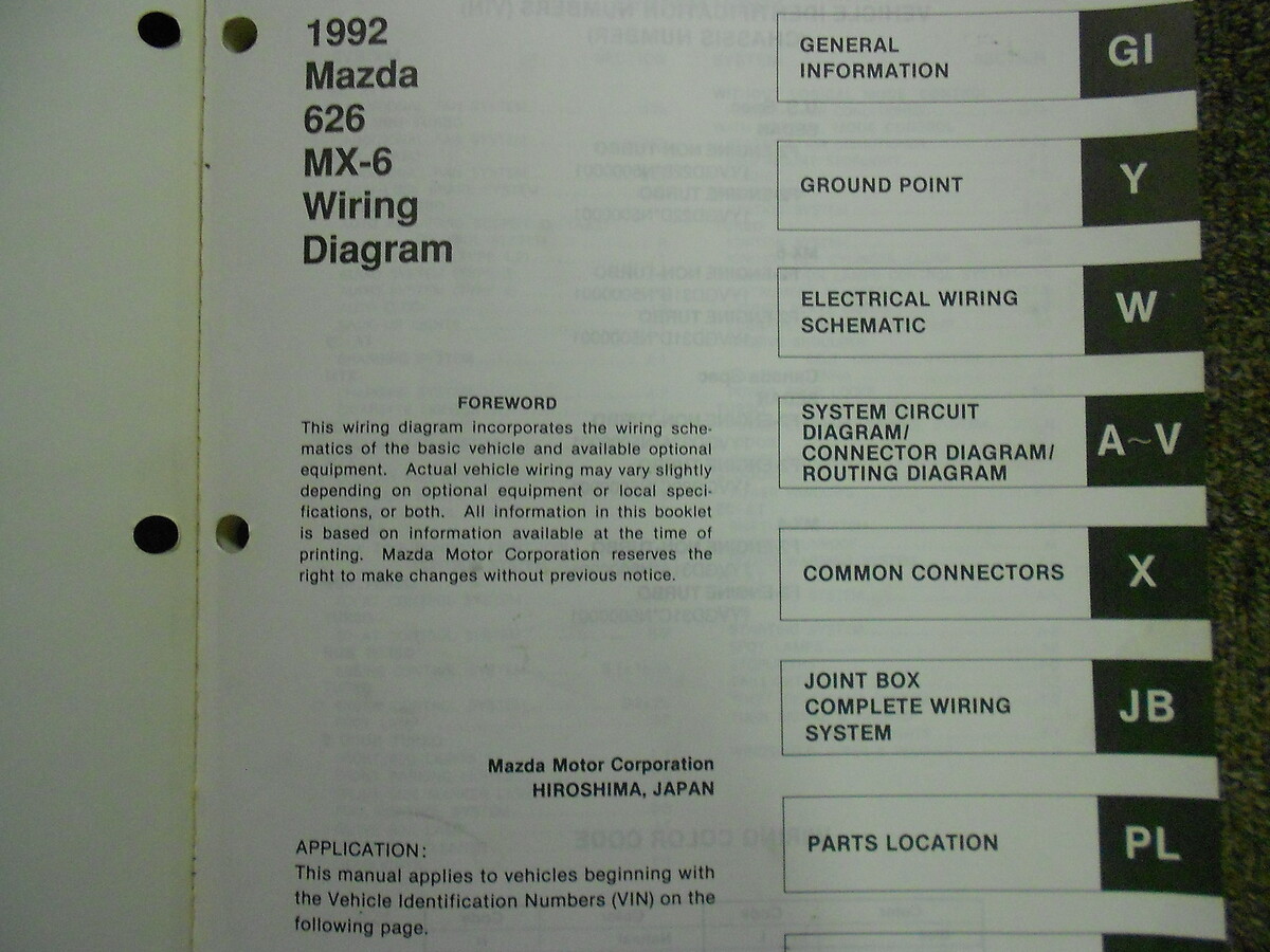 Manuale dello schema elettrico 626 MX-6 del 1992