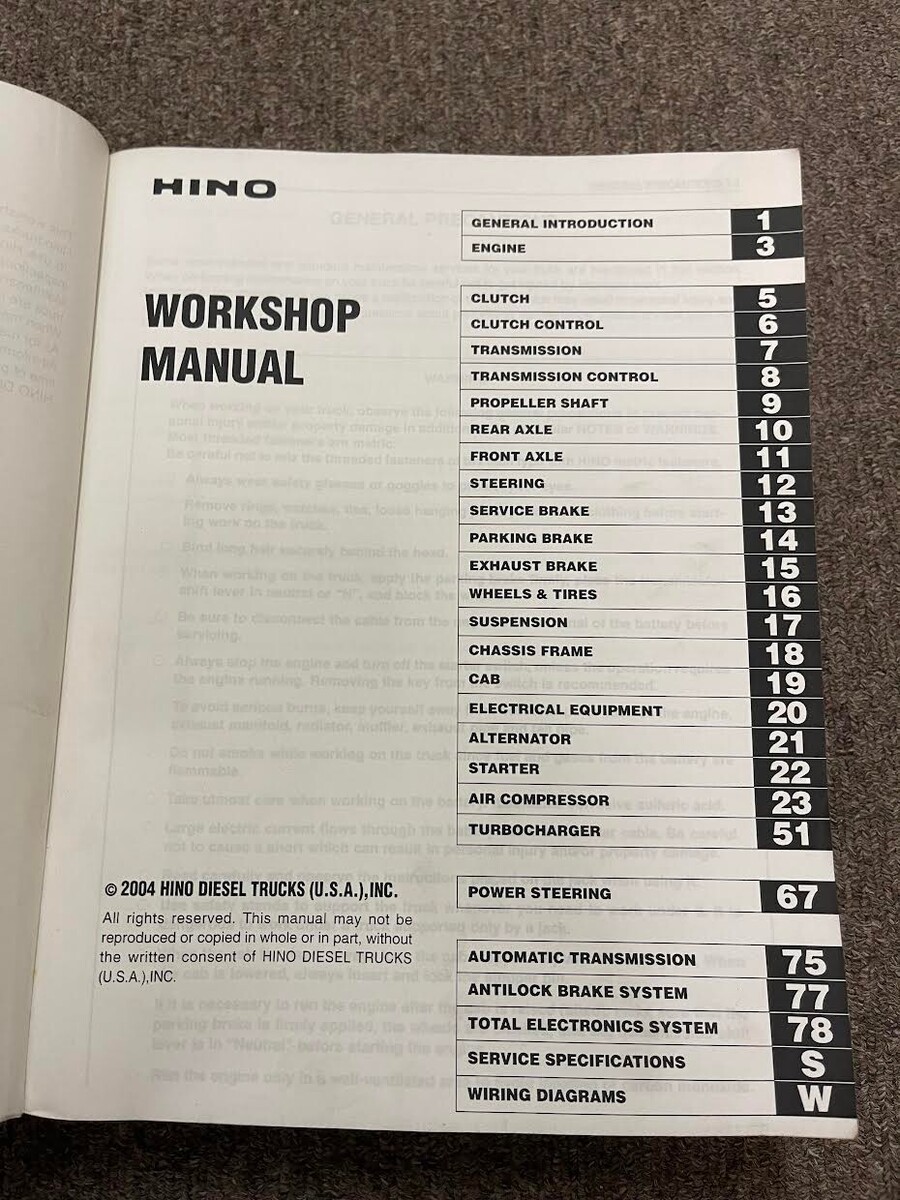 Questo manuale e pubblicato da Hino e sono gli stessi manuali che i meccanici/tecnici di Hino usano presso la concessionaria quando assiste il veicolo