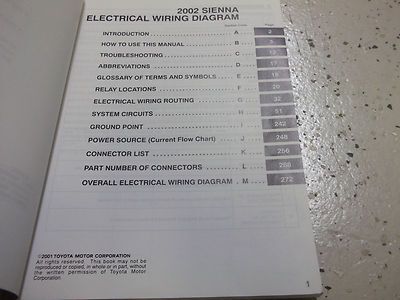 2001 TOYOTA SIENNA Manuale di servizio 2 set di volumi e manuale degli schemi elettrici.