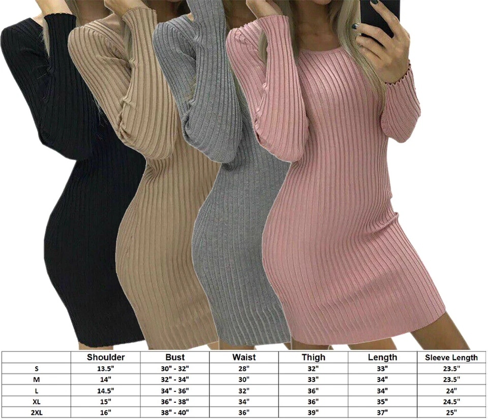 Women Sexy Bodycon Knit Sweater Dress Casual Slim Long Sleeve Mini Jumper
