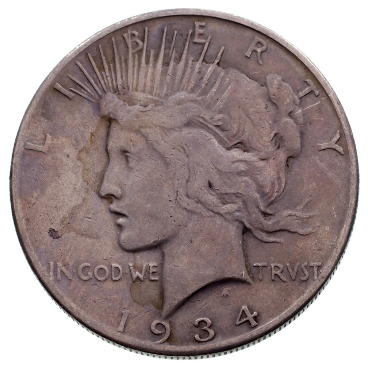 1934-S Silver Peace Dollar in Fine+ Condition, Light Gray Color Strong Detail