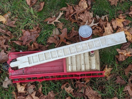 A vendre est un camion de pompiers vintage Tonka Metal Red Ladder 32202 XR101 d'occasion en bon etat Quelques usures (voir photos)