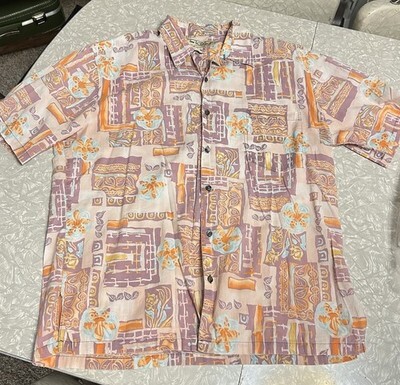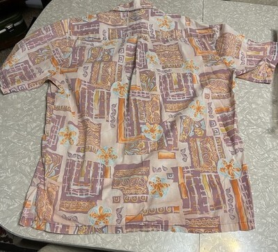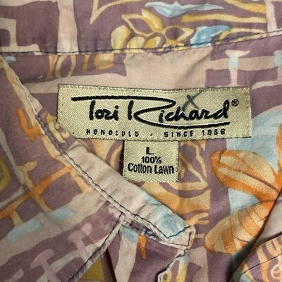 Tori Richard Mens Hawaiian Shirt 100% Cotton Lawn floral purple orange Large