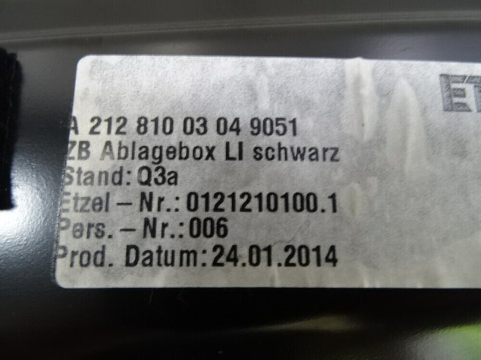 14 Mercedes W218 CLS550 seat storage pocket, left front, 2128100304, black