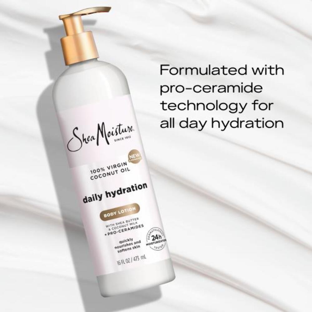 SheaMoisture Daily Hydration Body Lotion with 100% Virgin Coconut Oil, Shea Butter, Coconut Milk and Pro-Ceramides, Quickly Nourish Soften Skin, 24H Moisturizing 16 oz