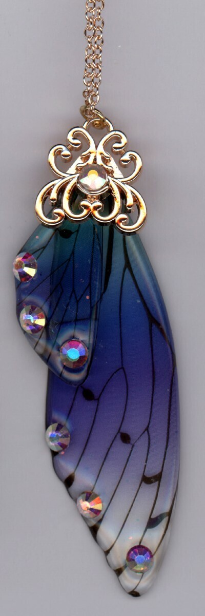 Moda Hecho a Mano Azul Fairy Cuento Cicada Alas Collar Pedrería