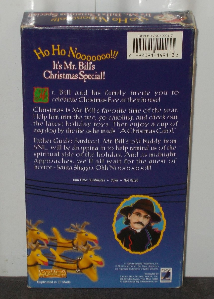 This is the original 1996 VHS release of "Ho Ho Nooooooo!!! It's Mr. Bill's Christmas Special!" The special follows Mr. Bill and his family as they prepare for Christmas Eve, encountering their usual mishaps and, of course, the villainous Sluggo.