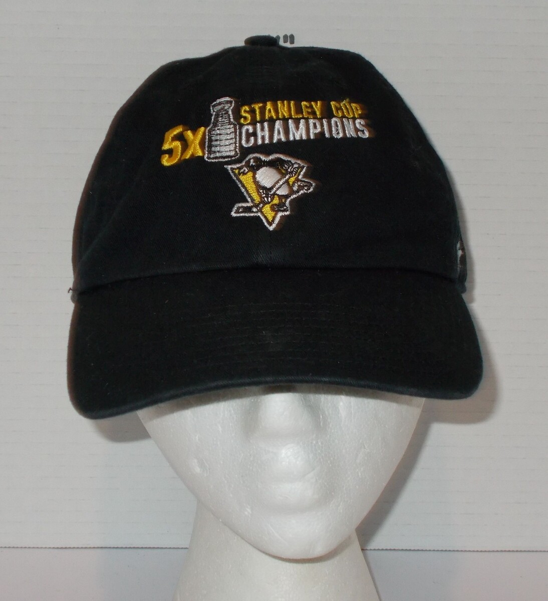 Pittsburgh Penguins 5x Stanley Cup Champs Strapback Hat Cap Black OSFM