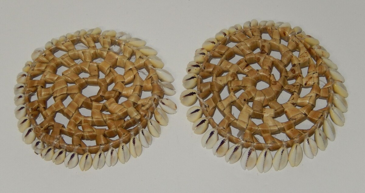 For Sale is a Set of 2 Coasters 4" Round Open Weaved Wicker with Cowry Shell Border. it in good used condition as seen in the pictures provided what you see is what you will receive. Please ask Any and All Questions prior to purchasing. Fast Same or Next day shipping with Free Delivery Confirmation within the U.S. Payment Due within 7 days of purchase (if you need more time please let us know In advance) we love to combine shipping is always a Yes and Most of the time Additional Items Ship for free.