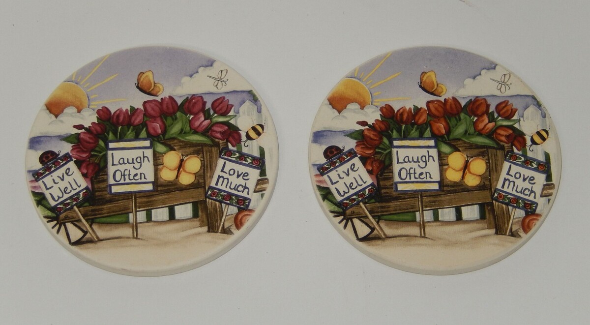 For Sale is a Set of 2 Coasters Ceramic Cork Live well Laugh Often Love Much. it in good used condition as seen in the pictures provided what you see is what you will receive. Please ask Any and All Questions prior to purchasing. Fast Same or Next day shipping with Free Delivery Confirmation within the U.S. Payment Due within 7 days of purchase (if you need more time please let us know In advance) we love to combine shipping is always a Yes and Most of the time Additional Items Ship for free.
