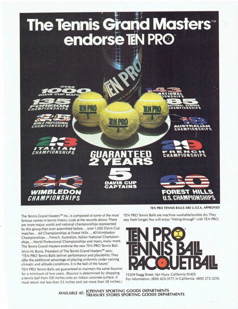 80's Ten Pro Print Ad Tennis Racquetball Balls 8.5" x 11"
