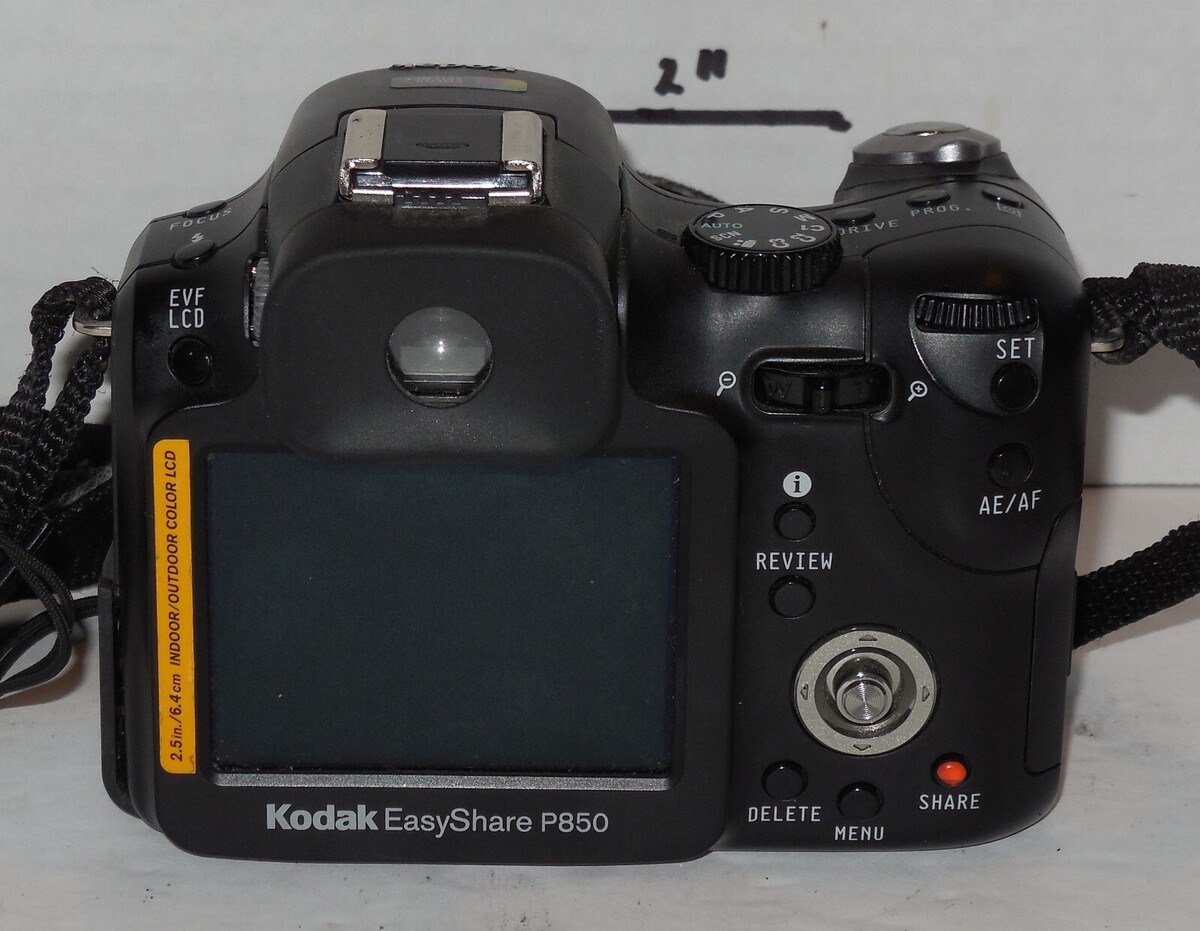 For Sale is a Kodak EasyShare P850 5.1MP Digital Camera - Black Tested Works! Its In good USED condition. Its been Tested and does work as can be seen from the pictures provided. This is for the Camera and battery only. Charger or USB cord will need to be purchased Separately. What you see is what you will receive if its not pictured then its not included. Please ask Any and All Questions prior to purchasing. Fast Same or Next day shipping with Free Delivery Confirmation within the U.S. Payment Due within 7 days of purchase (if you need more time please let us know In advance) we love to combine shipping is always a Yes and Most of the time Additional Items Ship for free. SKU4MS