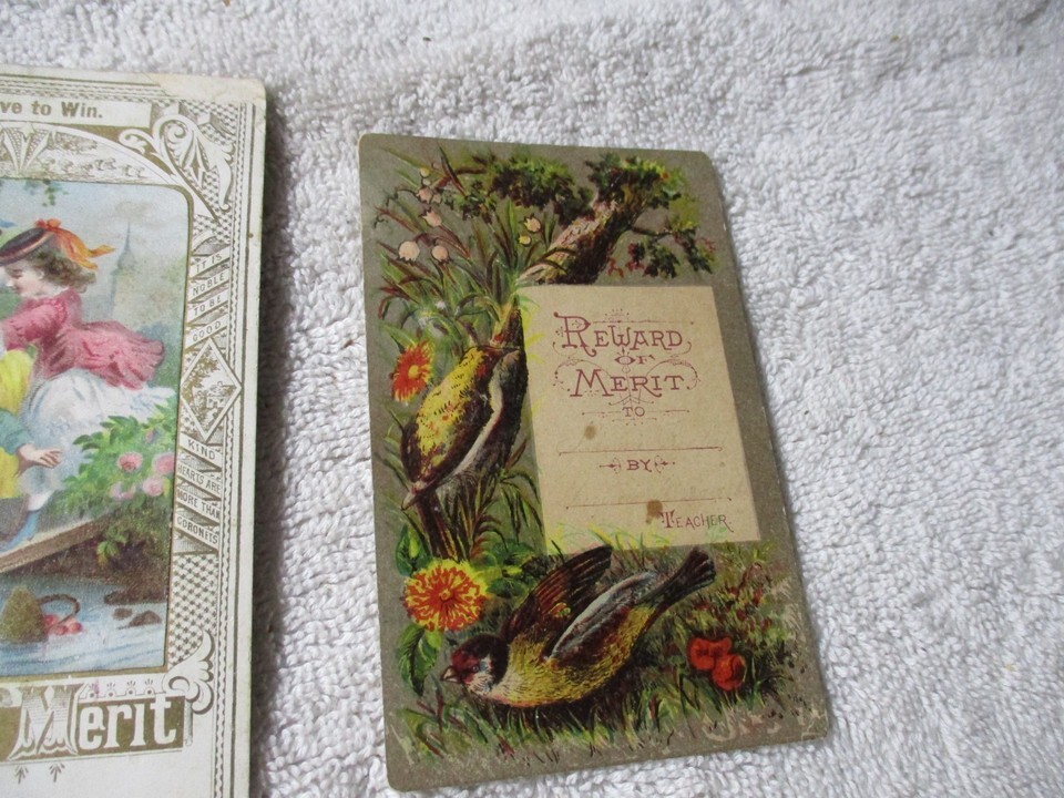 4 Victorian Era 1880s Antique Reward Of Merit Trade Cards School Ephemera unused