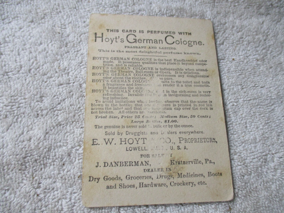 Vintage 1880s Hoyt's German Cologne Trading Card Lowell Massachusetts 4.5 x 3.5