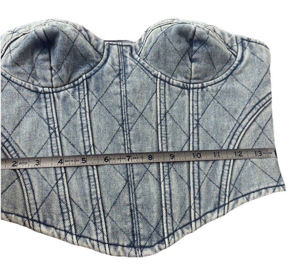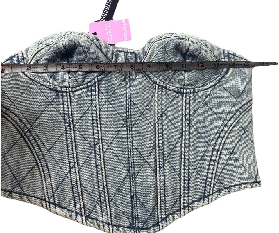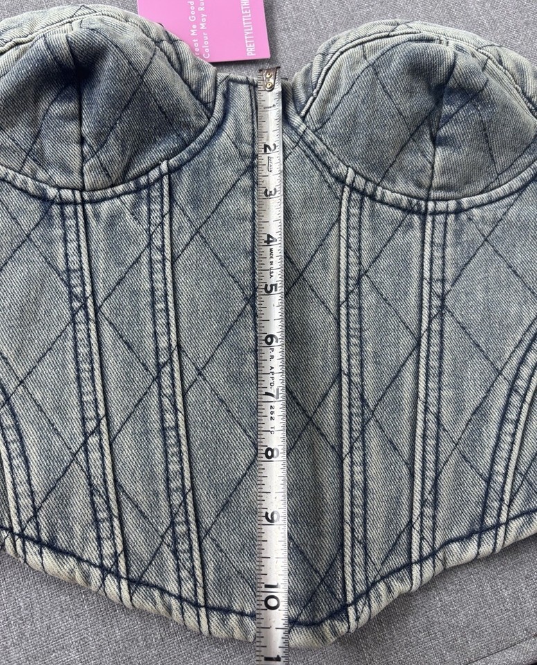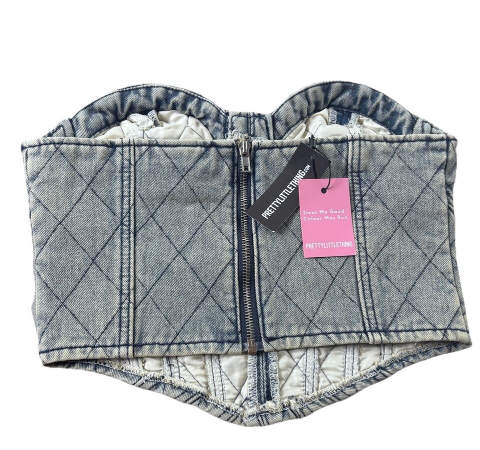 NWT Pretty Little Thing Denim acid Wash Denim Jean Corset Crop Top Y2K Sz 4