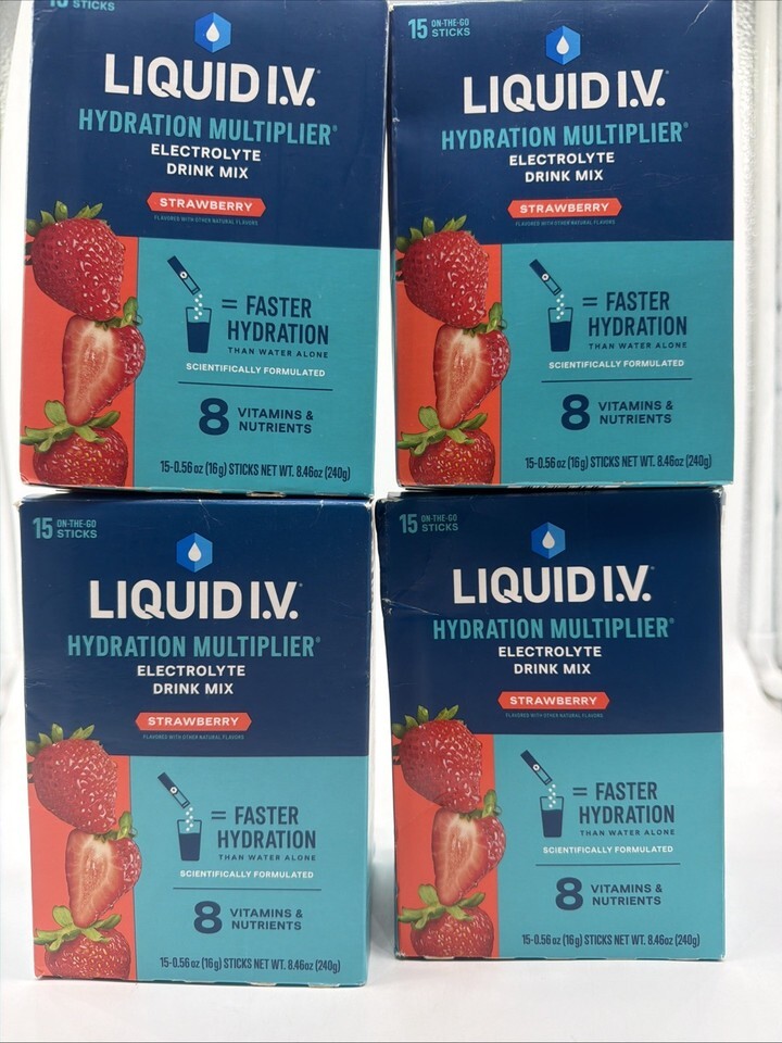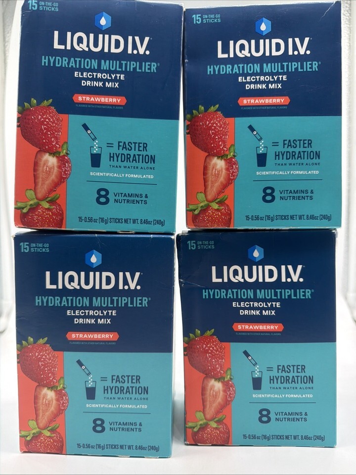 (4) Liquid I.V. Electrolyte Mix Hydration Multiplier 15 Strawberry COMBINESHIP