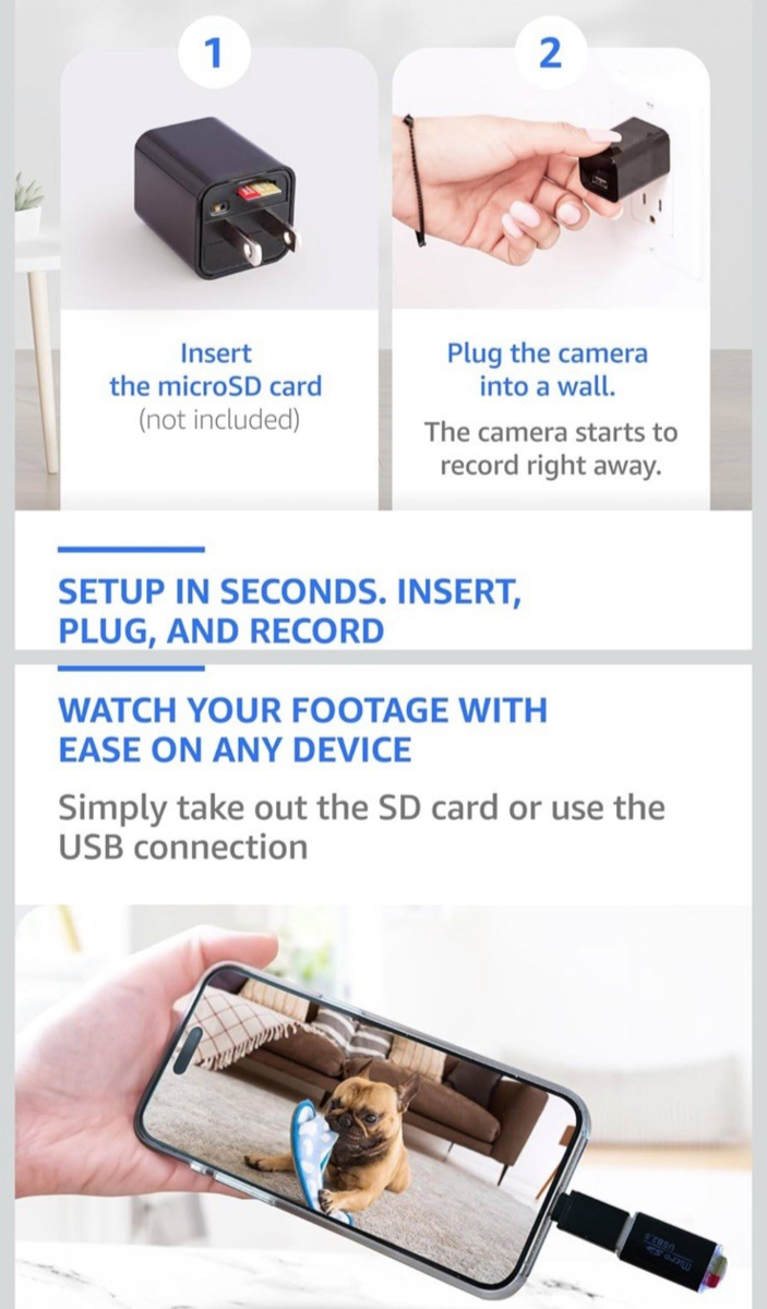 The Mini HD Home Surveillance Camera by Sznfh is a compact and versatile device USB charger with video camera