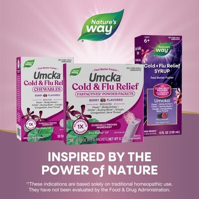 10/26 Nature's Way Cold + Flu Relief FastActives, Umcka, Homeopathic, Fever*, Sore Throat, Cough, Congestion, Phenylephrine Free, Non-Drowsy, Berry Flavored, 10 Packets (Packaging May Vary)