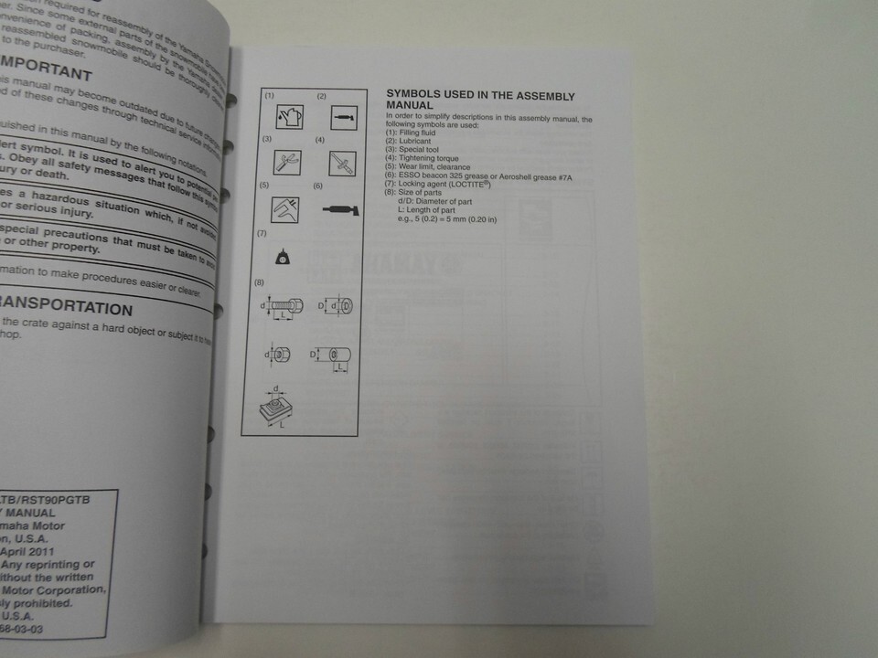2012 YAMAHA RS90PB RS90PLTB RST90PGTB MANUEL D'ENTRETIEN SUPPLEMENTAIRE ENSEMBLE DE 2 VOLUMES
