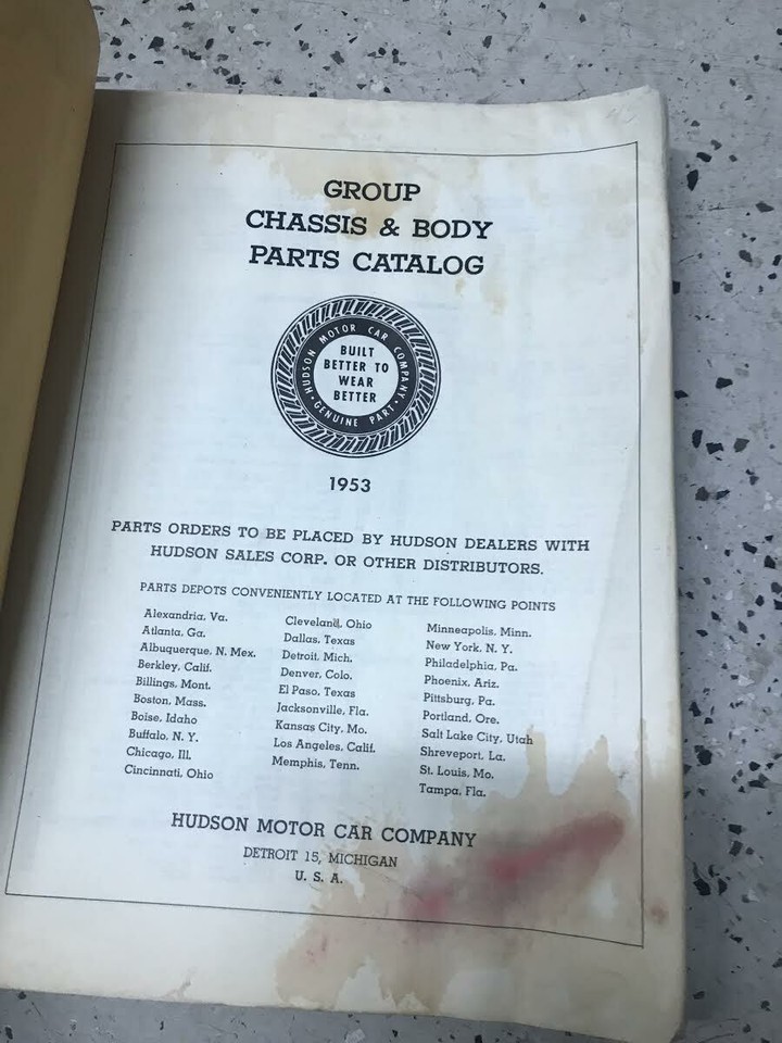 1953 Hudson Usine Groupe Chassis Corps Parties Catalogue Manuel Usine OEM