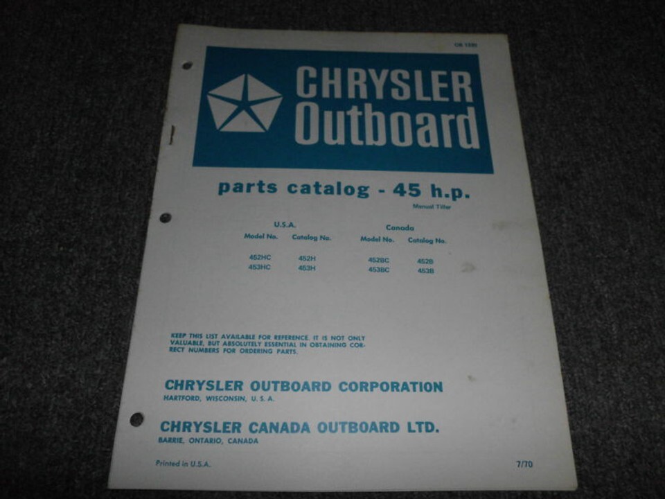 Un catalogue de pieces de motoculteur manuel Chrysler hors-bord 45 HP 1970. Quoi tu vois c'est quoi toi volonte recevoir, nous ne le faites pas utiliser des stocks