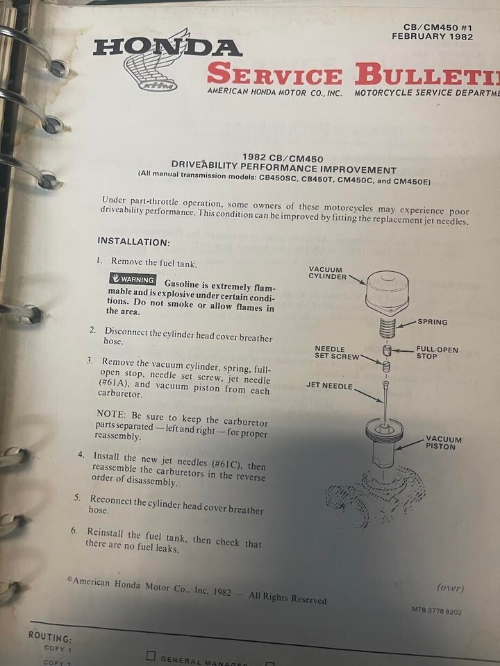 Manuel De Réparation D'Atelier OEM 61MC003 Honda CB/CM450S 450 1982 1983 1985