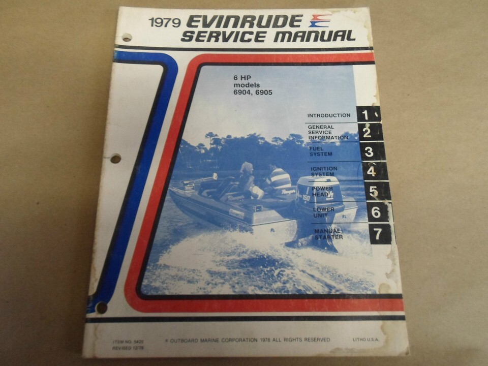 Manuel De Réparation Et De Service Evinrude 1979 6 HP 6904 6905 OEM Bateau