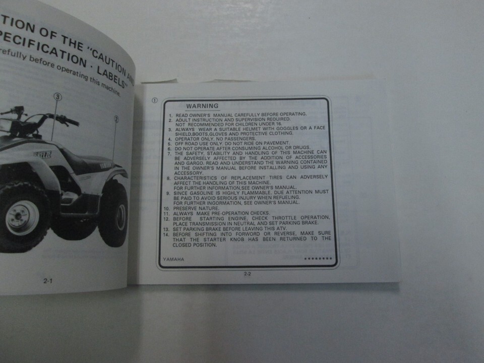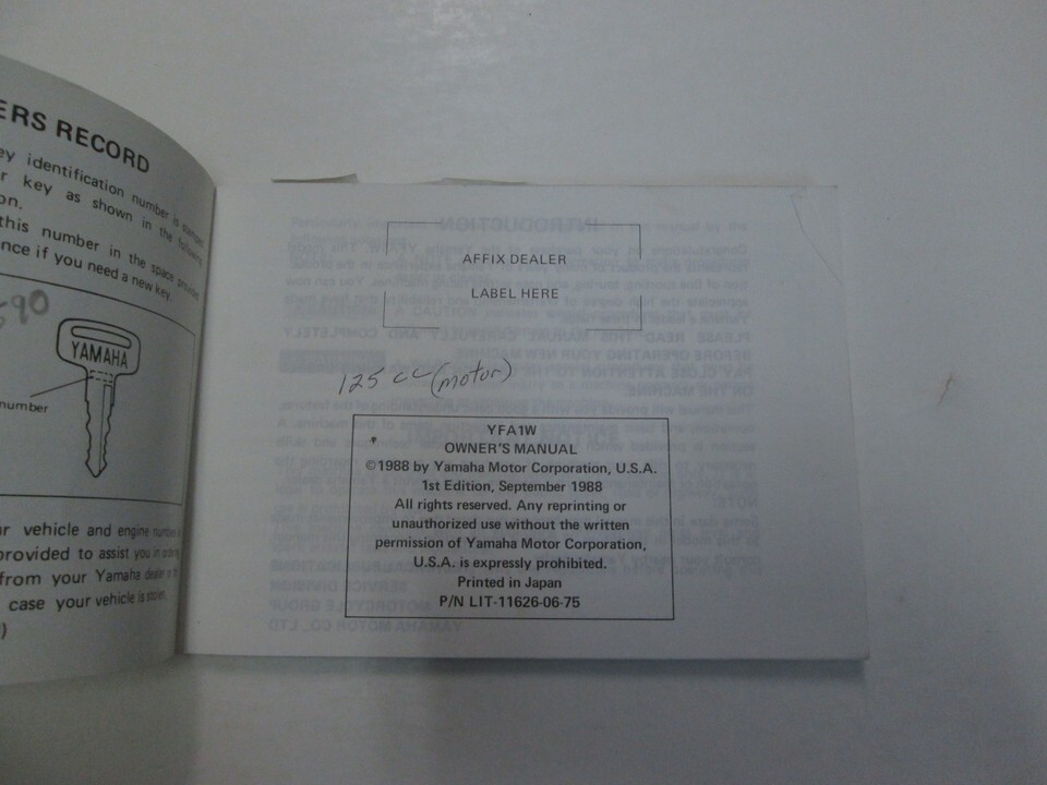 Manuel Du Propriétaire Yamaha YFA1W 1989 LIVRE OEM D'Usine LÉGERES TACHES 89