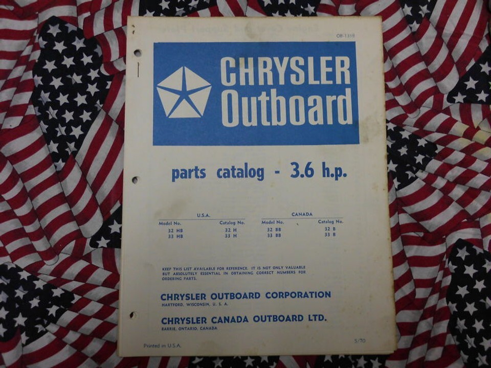 Catalogue De Pièces 1970 Chrysler Hors-Bord 3,6 CV 32 33 HB H