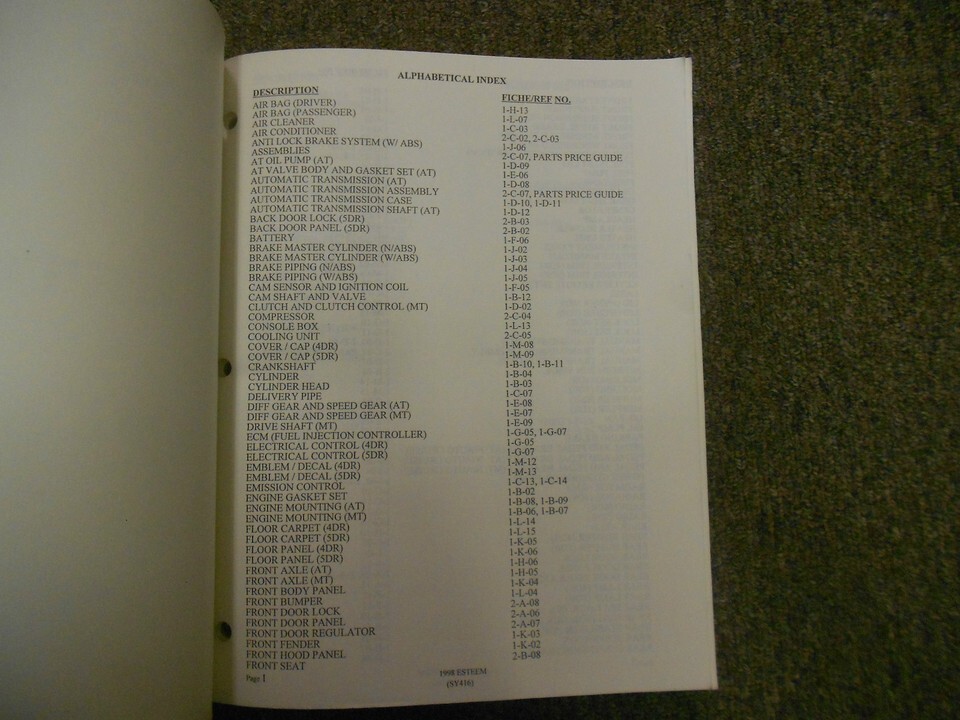 1998 Suzuki Esteem Parties Catalogue Atelier Manuel Usine OEM Livre 98 Avril 99