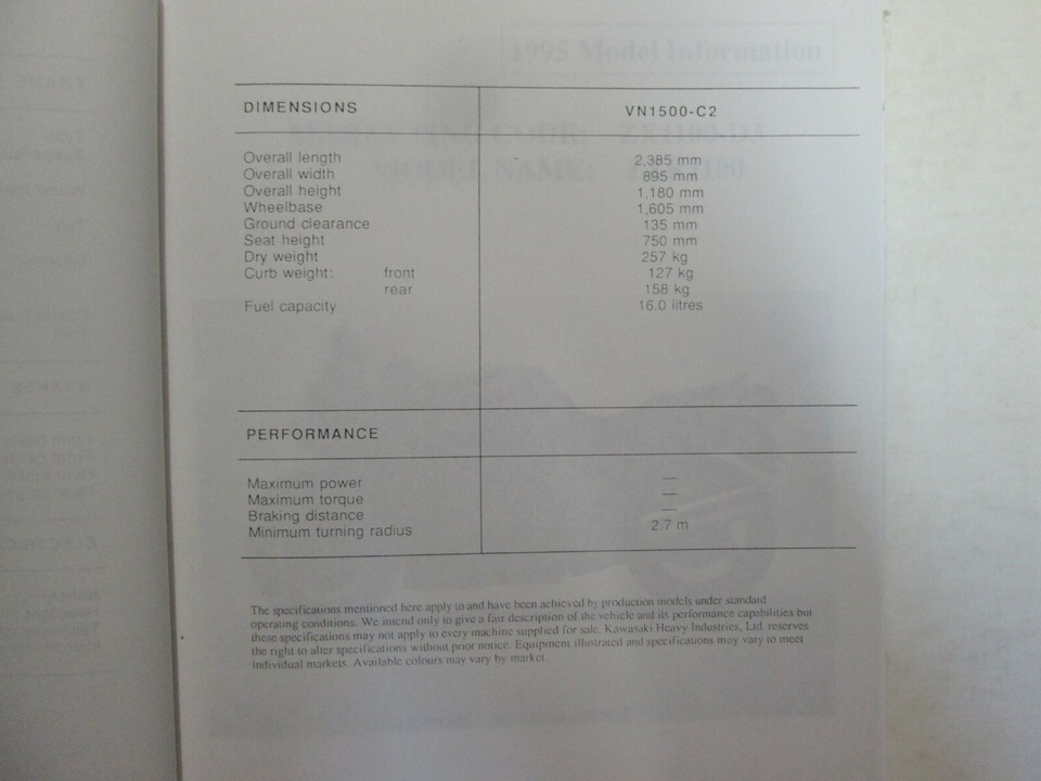 Manuel d'information sur le modele de moto Kawasaki 1995, partie A
