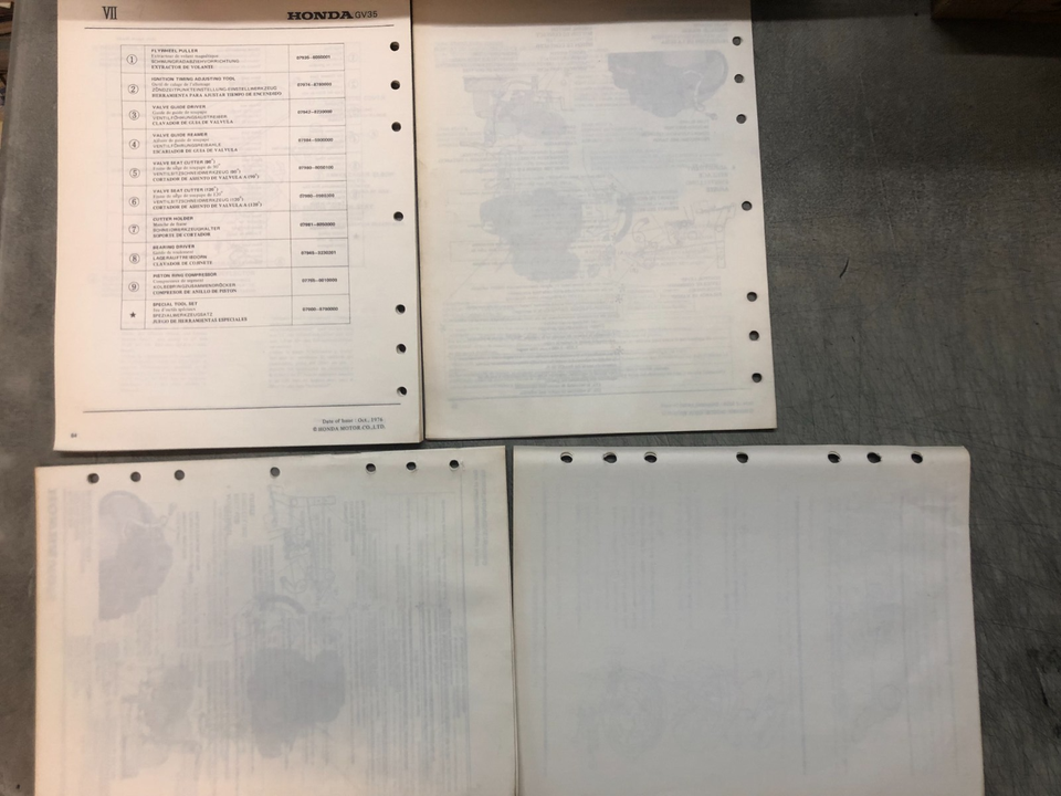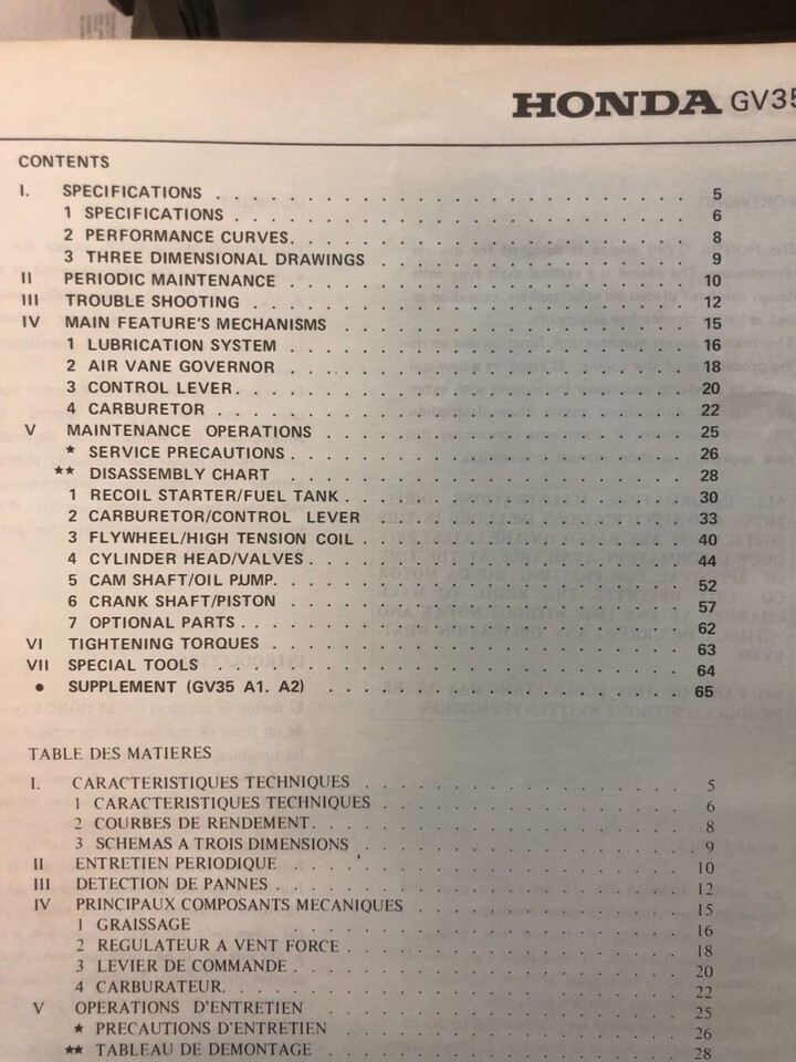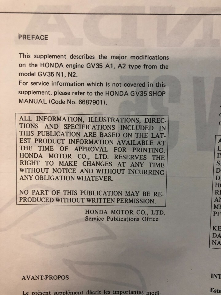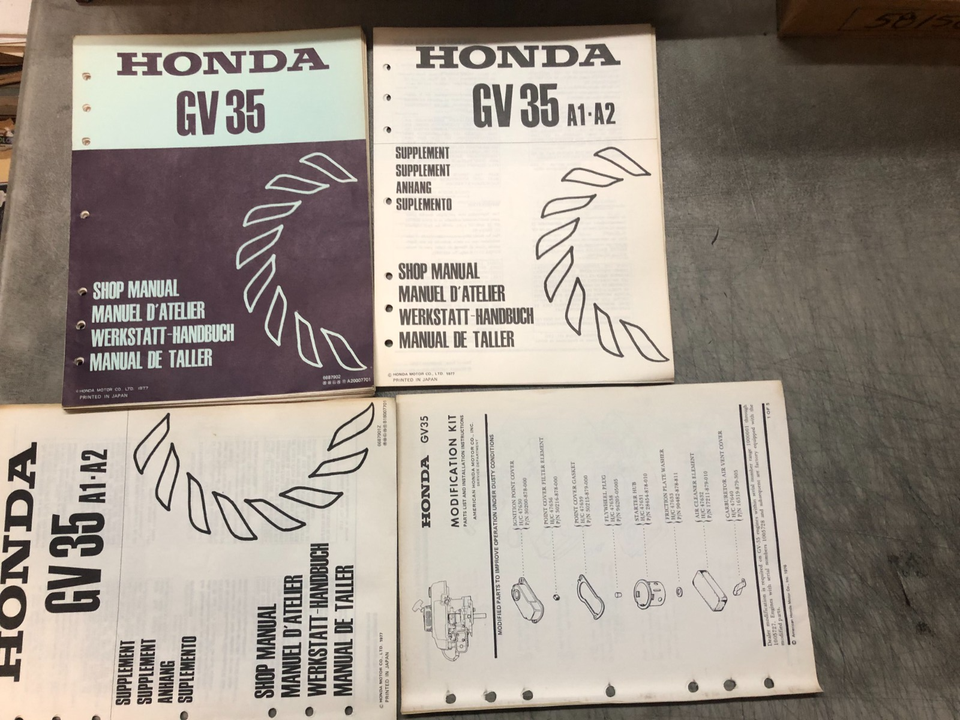 Moteur Honda GV35 1978 Manuel de reparation de l'atelier de service, GV35 A1, supplement A1, deuxieme supplement similaire et kit de modification GV35