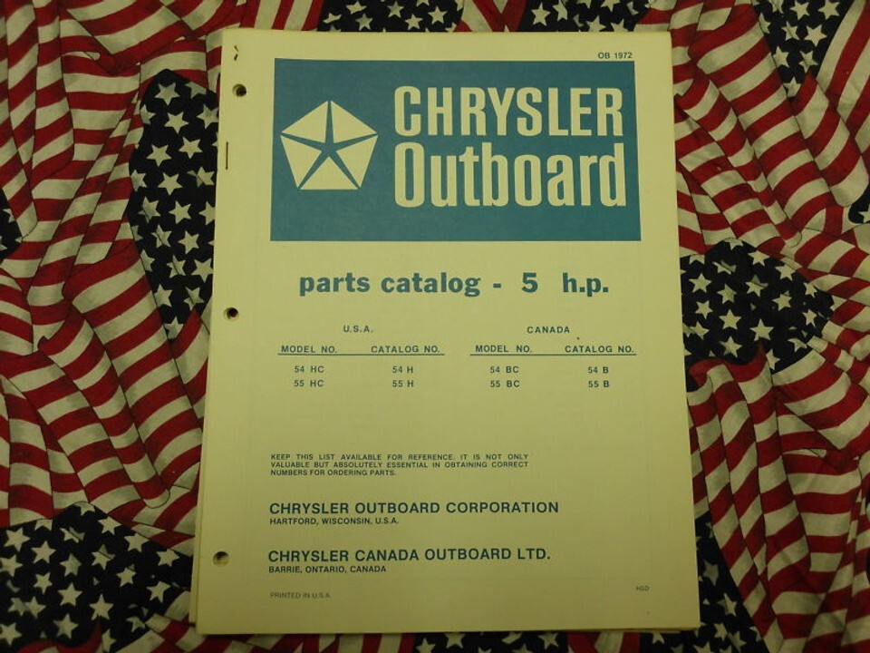Un catalogue de pieces Chrysler hors-bord 5 HP. Pour les modeles 54 HC, 55 HC, 54 H, 55 H. Quoi tu vois