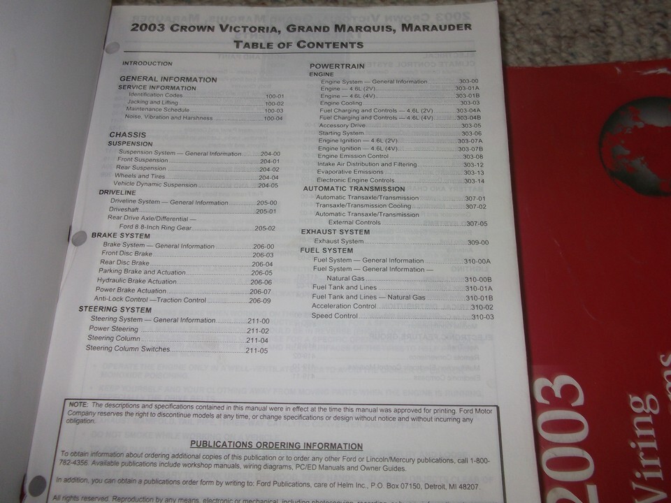2003 Ford Corona Victoria Mercury Grand Marquis Service Shop Repair Manual- s...
